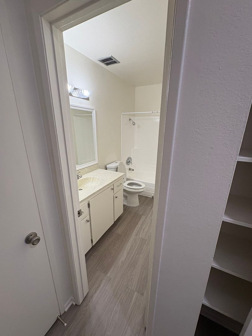 Very nice upstairs 1 bed 1 bath apartment that features new flooring throughout, newly refinished countertops, modern fixtures, and private balcony. Also features plenty of closet and storage space with a wardrobe closet in the bedroom and two additional hallway closets. Apartment is located close to our community pond and laundry. Includes 1 assigned parking space. Secondary parking space or enclosed private garage available for rent if needed.